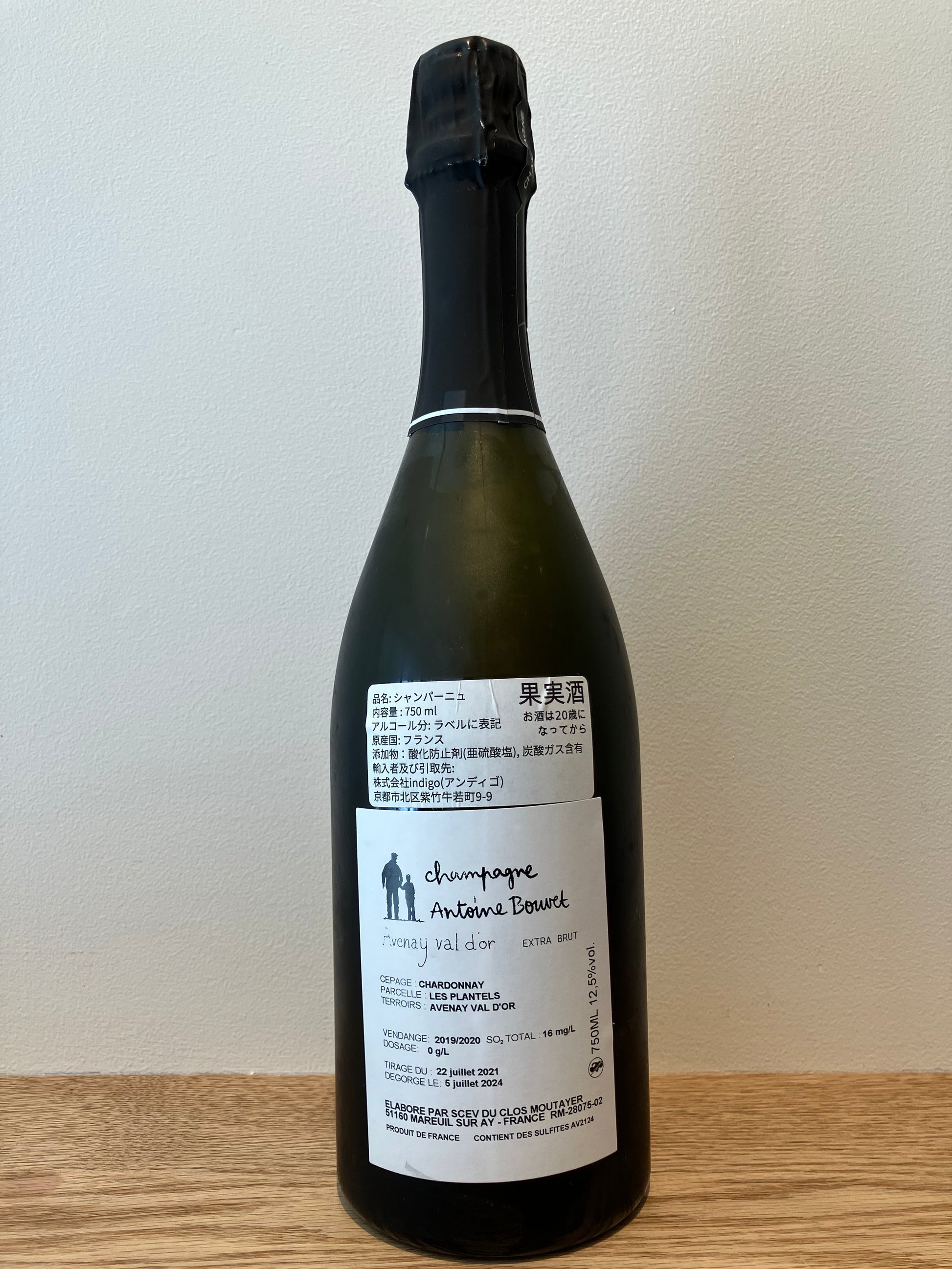 アントワヌ ブヴェのエクストラ ブリュットのシャンパーニュ アヴネは、マレイユ・シュール・アイ村、アヴネ・ヴァル・ドール村のプルミエクリュ、 樹齢35年のシャルドネ品種のぶどうの100の%シャルドネで作られています。ドサージュ0 g / l。 収穫年:2019/2020年 デゴルジュマン: 2024年7月5日