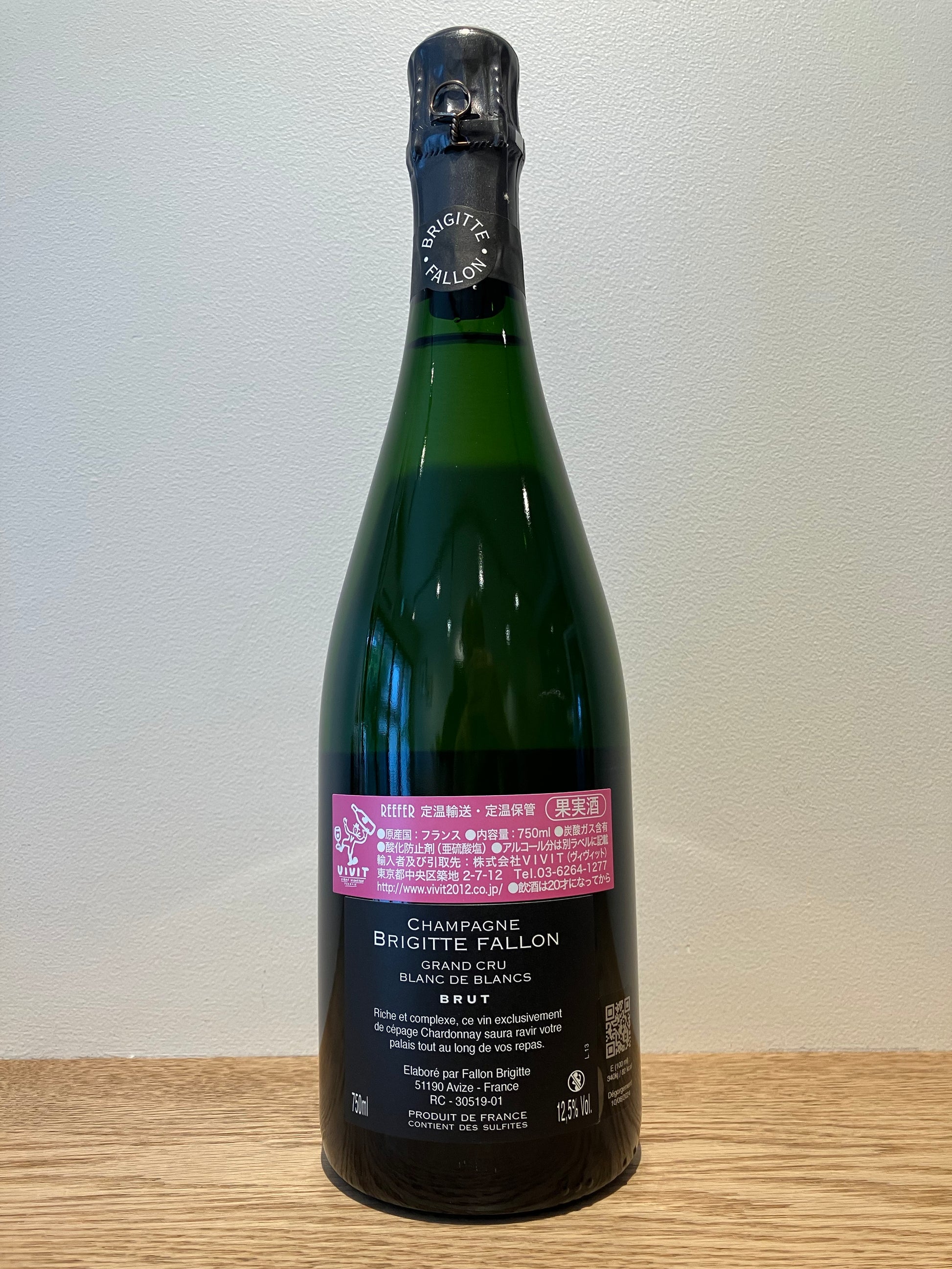 ブリジット・ファロンのシャンパーニュは、夫であるミシェル・ファロンが栽培したブドウから造ら れる別名義のキュヴェです。ミシェル・ファロンは、2000 年の 6 月からアンセルム・セロスのド メーヌで働いてきました。セロスが世界的な名声を獲得していく 2000 年代を通じて、セロ スの栽培・醸造チームのリーダーとして、セロスのシャンパーニュ造りを影で支え続けてきまし た。ファロンは、セロスでの仕事と並行して、2004 年から自社畑で栽培したブドウから、 『Ozanne オザンヌ』と命名した自身のシャンパーニュ造りをスタートしました。その後、オザ ンヌの生産量は少しずつ増えていますが世界的にみても、まだまだ入手が極めて難しいシャ ンパーニュです。ブリジット・ファロンのシャンパーニュは、ミシェル・ファロンが、オザンヌと同じくア ヴィーズで栽培しているブドウで、オザンヌの醸造向けでないブドウが使われています。ファロ ンの自宅の隣小さな区画のブドウがメインに使われています。栽培は、ドメーヌ・ミシェル・フ ァロンと同様、殺虫剤は一切使用しておらず、ビオロジックで認められた手法を導入してい ます。しかし、ビオロジックの認証は受けておらず、あえて名乗ってもいません。このブドウがア ヴィーズの共同組合で委託醸造され、ブリジット・ファロン名義のシャンパーニュとしてリリース されます。醸造はステンレスタンクで発酵と熟成。マロ発酵は自然に行い、10 ヶ月前後熟 成した後、ティラージュして瓶内二次発酵へ移行。その後、澱と共に熟成させるマチュラシオン・シュール・リーを施します。