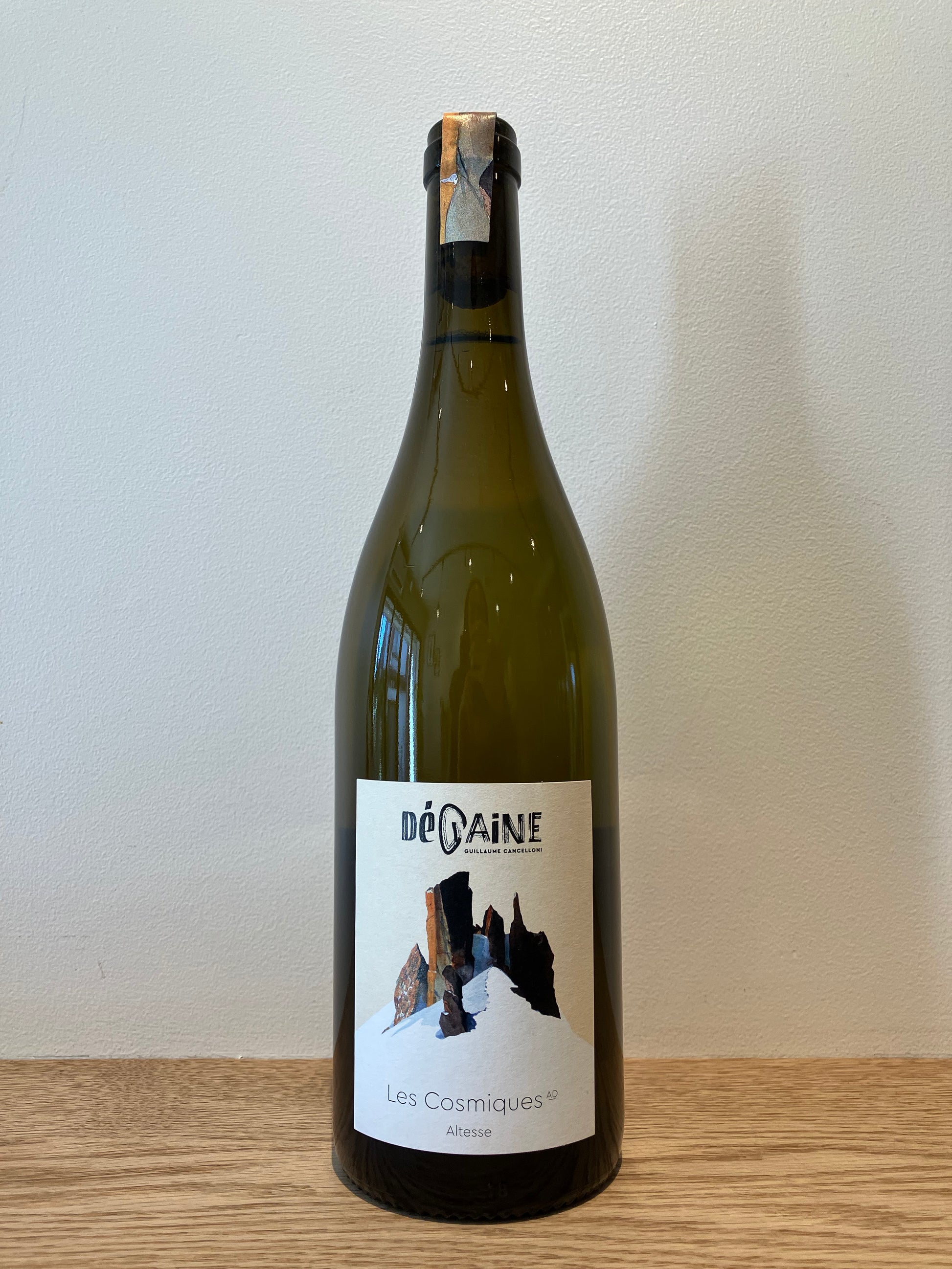 粘土石灰質土壌、南西向き、標高 380m 9/24収穫、収量 25hl/ha 垂直式プレス機で全房ダイレクトプレス、バリックで 1 週間自然発酵したのち熟成1年、澱下げ1回、瓶詰2024年9月、SO2無添加、ラベルはシャモニーのコスミック岩稜の風景です。