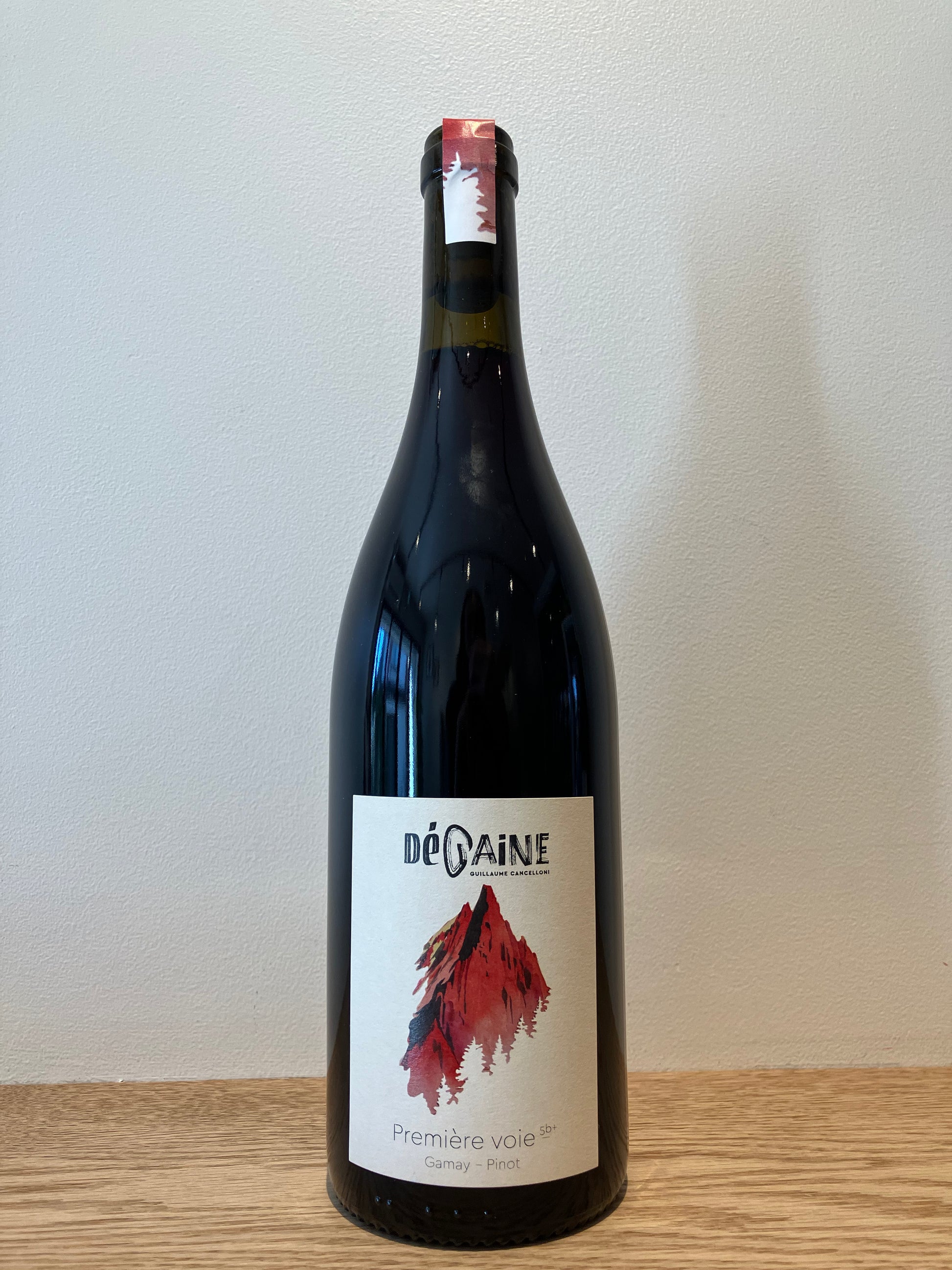 当主 Guillaume Cancelloni(ギヨーム・コンチェローニ)はパリ地方に生まれましたが両親の影響で幼いころから登山に触れて育ちました。ビジネススクールを卒業したのち、パリで銀行や保険会社などで働いていましたが、唯 一の楽しみは週末の山登りとどんなワインをみんなで飲むかでした。ワインはもちろん大人になってからの趣味でしたが、次第に山と同じくらい彼を魅了し、午前中に登山をし、午後はワイン生産者を巡ることが彼の週末のルーティー ンになりました。しかし都心で快適な暮らしを送れていることとは裏腹に、週末2日間の山とワインだけを楽しみにコンピューターの前で残りの平日を過ごす日々に常に何かが欠けているように感じていました。そして自分の直感を信 じ、2020年に「山でワインを造ったらどうなるのだろうか。」と思い立ち、挑戦することを決めました。プロヴァンスで初めてのワイン造りを経験したのち、ワインラヴァーとして大好きだった造り手の Côtes Roussesのもとで 2021年 ~2023年の間働きました。2023年の春にセラーを見付け、また Côtes Rousses のマリエルとニコラフェラン夫妻が Monthoux の高地の区画をくれたことで、2023年には半分は買い葡萄と合わせて8,000本のワインを造ることができました。ドメーヌ名の” DéGAiNE”は登山用具から名付けられ、ワイン名もラベルもすべて山に関するものが使われています。