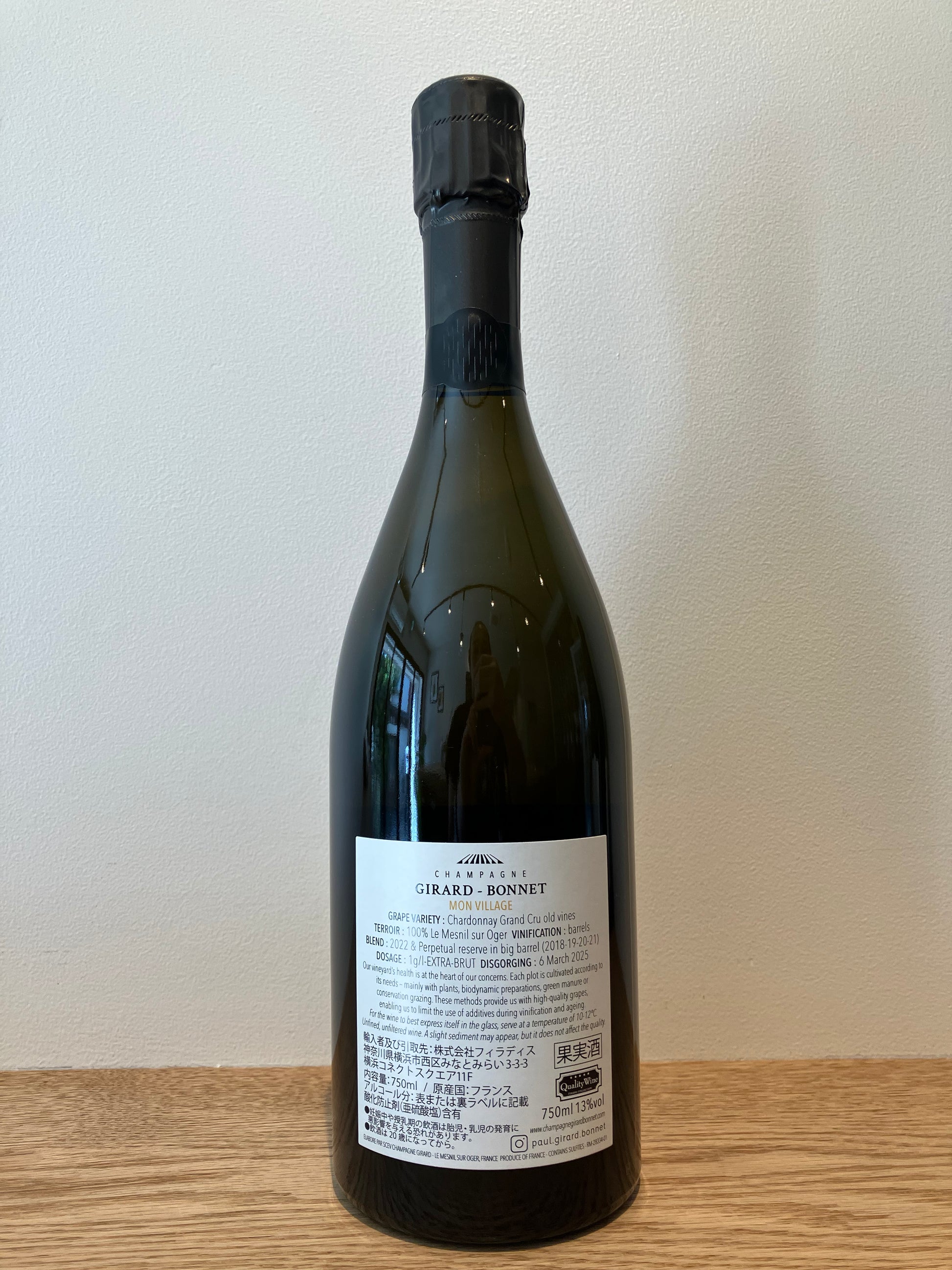 1900年代創業のワイン生産者である2つのファミリー、メニル・シュ ール・オジェの協同組合に所属していたジラール・ワイナリーと、1980年代に「F・ボネ・ペール・エ・フィス」の名で約 14 万本のシャンパーニュ を生産していたオジェのボネ・ワイナリーは、それぞれ違う道を歩んできた。残念ながら後者は1988 年に廃業し畑は賃貸に出されたが、この2 つのワイナリーのルートはフィリップ・ジラール(父)とドミニク・ボ ネ(母)の結婚統合によって、次の世代で出会う運命となった。賃貸契約が終了して数年後、フィリップとドミニクの息子であるポール・ジラールが自らのルーツに敬意表して、ドメーヌとしてのブランドを立ち上 げるという冒険に乗り出すために二つのワイナリーの畑を統合することを決意。こうして、ジラール=ボネ・シャンパーニュが誕生した。 1995年生まれのポール・ジラールはアヴィーズでブドウ栽培と醸造を学び、オジェ村のLaurent Vauversinの下で1年働いた。このドメーヌは2012 年よりオーガニック栽培に切り替えており、栽培はもちろん、土壌へのアプローチ、成熟具合の見極め、バレルの選択、熟成のアプローチなど数々を学んだ。ポールは多くを学んだあと、同様のアプローチを取りつつも自身の色々なアイディアに挑戦したいと思っていたので、他ワイナリ ーでの研修は 1 年で切り上げて自身のドメーヌを設立した。ヴォーヴェルサンはオーガニック栽培への確信を与えて くれた素晴らしい師としている。