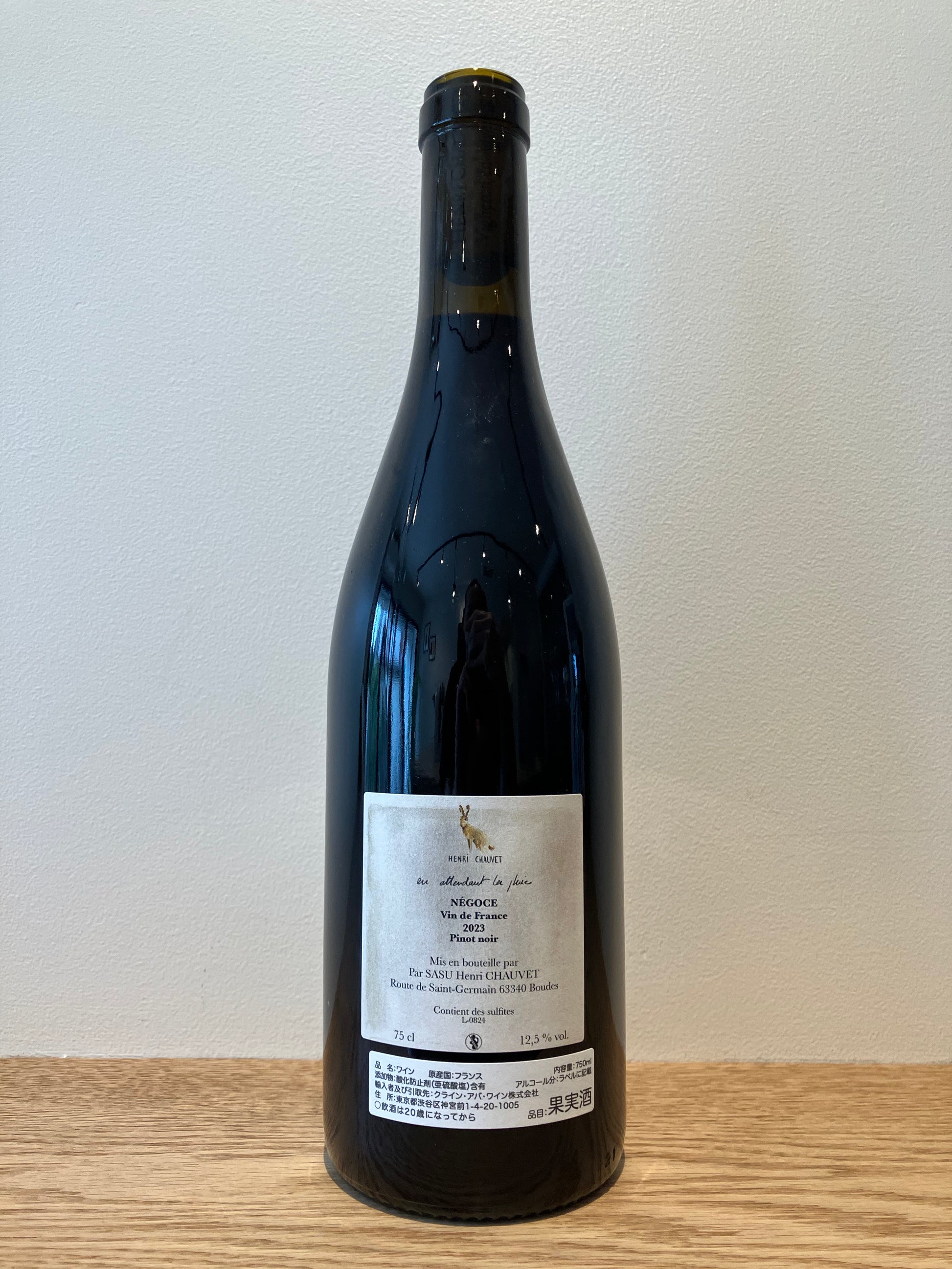 2023年にカリニャンに次いで購入したピノ・ノワールを使用しています。サヴィニー・レ・ボーヌ の「オ・フルシュ」という区画で栽培されたオーガニックのピノ・ノワールです。ブドウを栽培して いるのはこの地域で有名な醸造家で、例えばバスティアン・ウォルバーなどにブドウを販売していま す。手摘みで収穫後、ブドウの一部を大きな円錐形の木製タンクで、もう一部をステンレスタンクで 全房マセレーションを10~12日間行います。その際、果帽を湿らせるためにバケツでルモンター ジュを行います。 228リットルの古樽で9ヶ月熟成させ、その後9ヶ月瓶内熟成させます。酵母不使用、無清澄、無濾過。