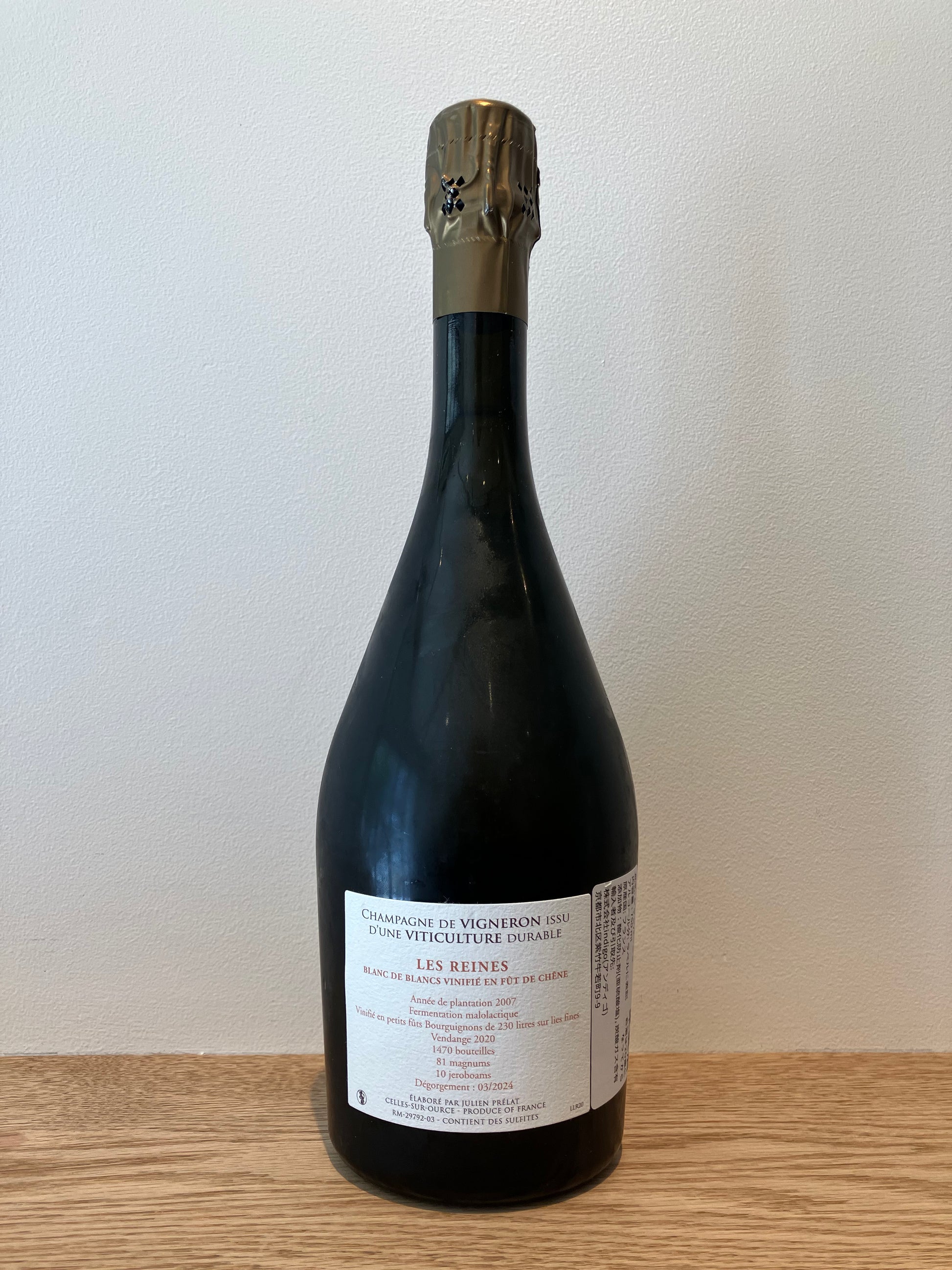 このキュヴェは、2020年収穫のシャルドネ種100%からできています。2020年のシャルドネはよく熟した良質のブドウを収穫できました。このブドウ畑は、粘土と石灰質からなるキンメリジャン土壌のテロワールにあり、コートデバール地区の真ん中に位置するセル・シュール・ウルスという村にあります。減農薬栽培(有機肥料を使い、土壌を機械で耕作、殺虫剤は一切使用しない)を採用し、持続可能な農業を目指しています。ブドウは手摘みで収穫され、シャンパーニュ地方の伝統的縦型圧搾機を使用してプレス、木樽でアルコール発酵後、乳酸発酵。オーク樽で3年間熟成。ドザージュ・ゼロのブリュット・ナチュール。デゴルジュマンは2024年3月。生産量1470本。醸造においても、添加物の使用や化学的処理を極力抑えて環境に配慮したリュット・レゾネを採用しています。