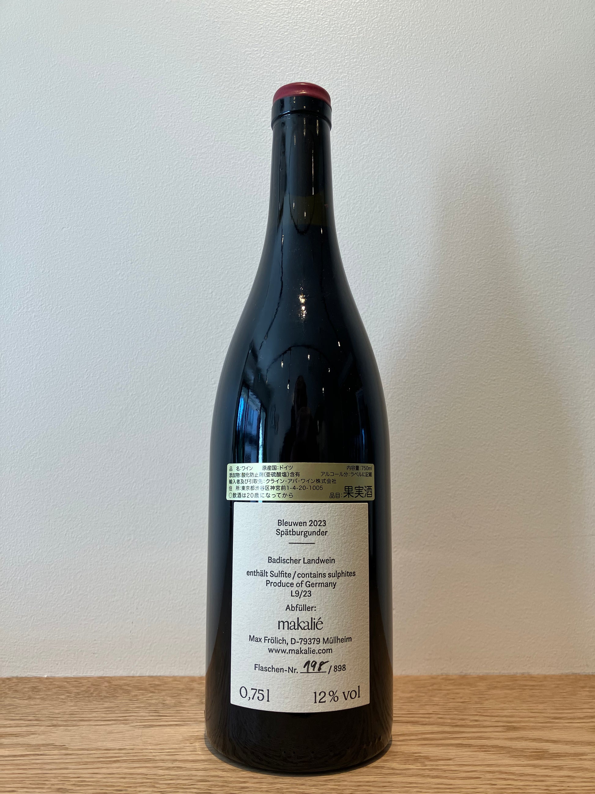 石灰岩の比率が非常に多い標高400mで真南向きの区画。傾斜は45度もあり、日照条件は非常に良いが、東側のシュヴァルツワルトから降りてくる冷気で昼夜間の温度差が大きい。マカリエの畑でもブドウが最も熟し、力強いワインとなる。手摘みで収穫後、20日間のマセレーション(全房比率70%)。その後時間をかけてゆっくりプレス。古バリックで自然に発酵させた後、18ヶ月間熟成。無清澄、ノンフィルターで瓶詰め。瓶詰め時に極少量のSO2を使用。