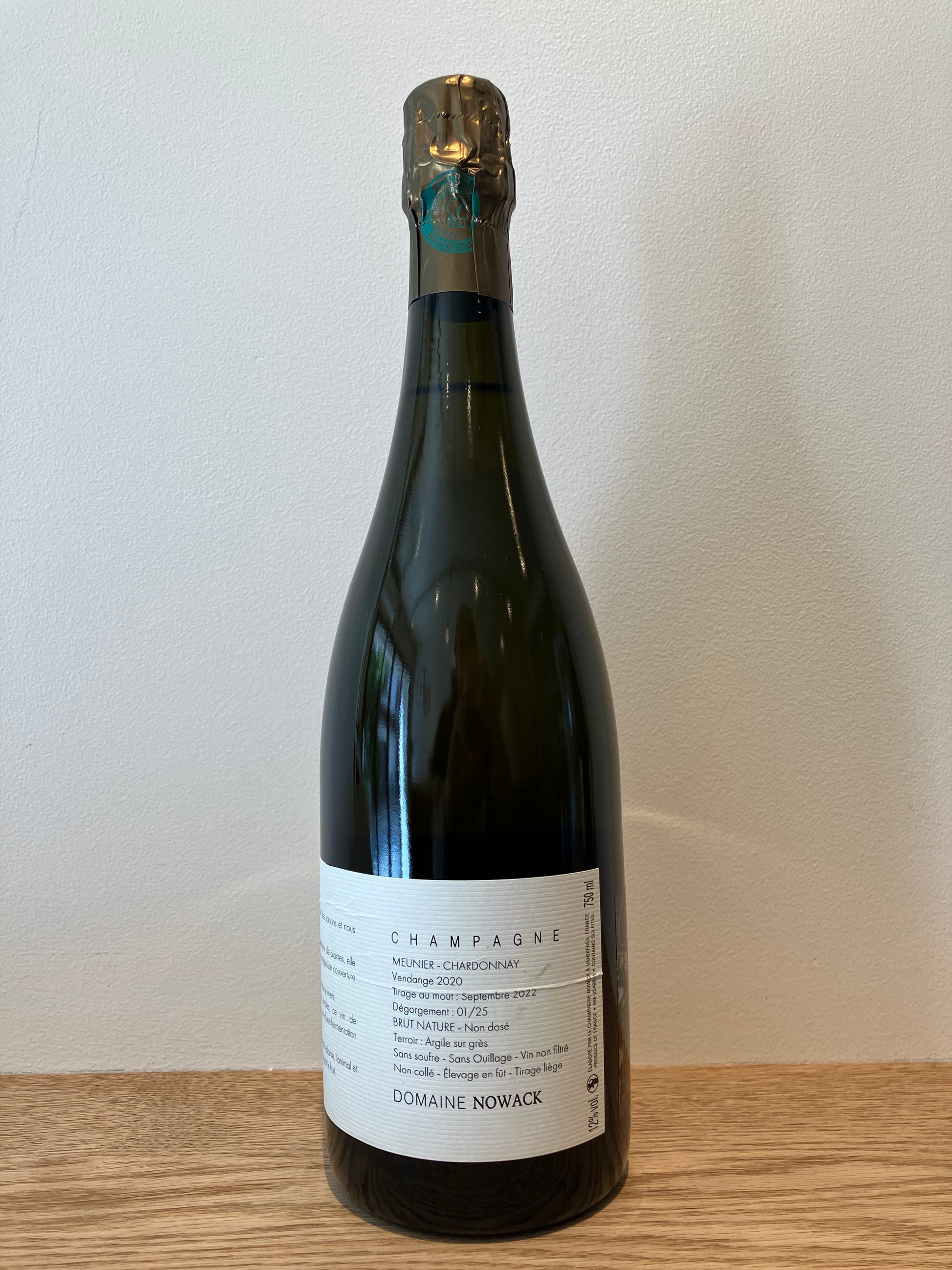 バリック&フードルで発酵、バリック22ヶ月熟成後、瓶熟28ヶ月。ドサージュ0g/L。ヴァンディエール村に位置する単一区画のムニエとシャルドネを使用。蜜リンゴや柑橘のアロマにアーモンドのヒント。柔らかく円熟な果実ときめ細かい酸が折り重なる。