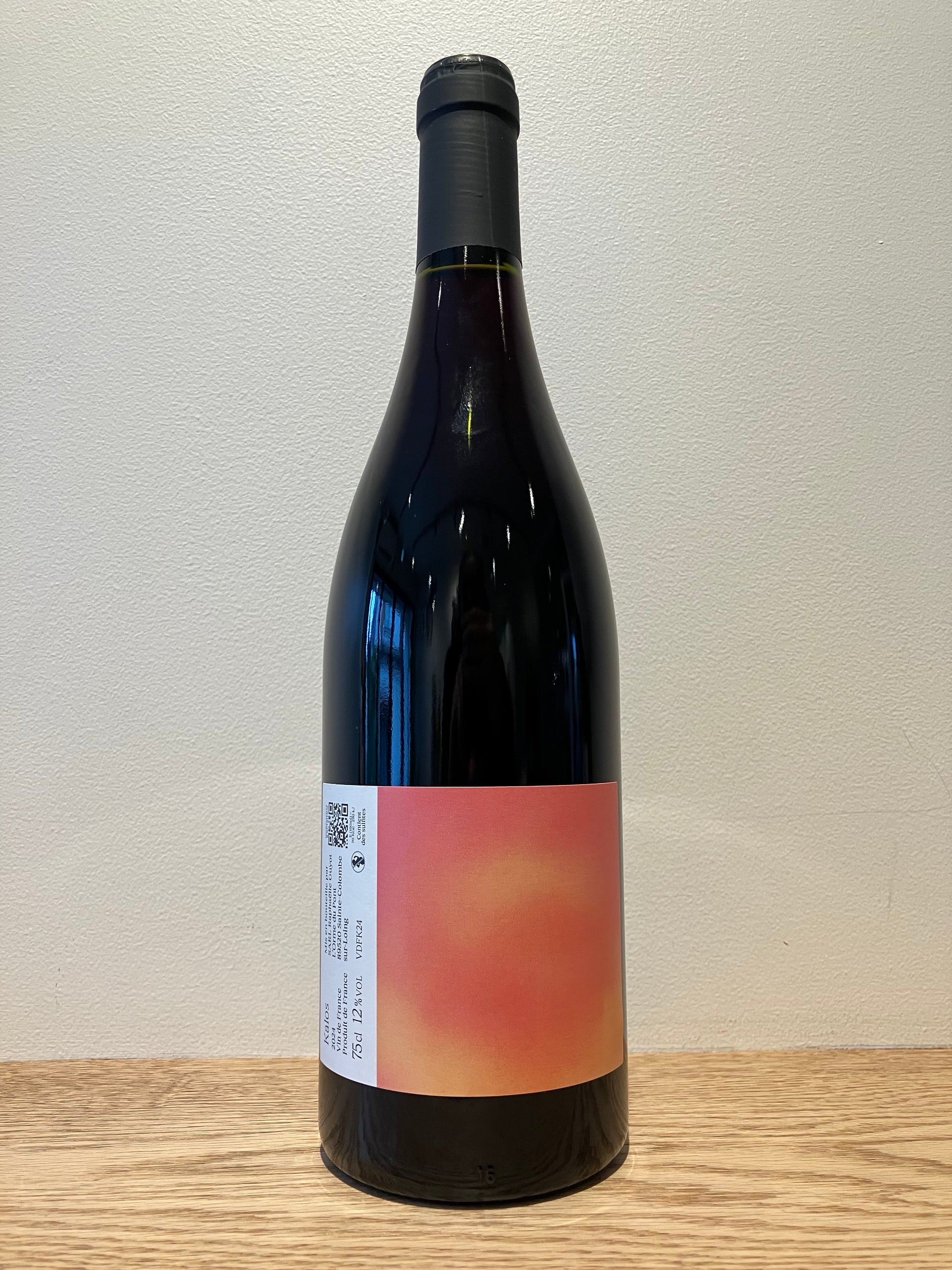 手摘みで収穫したブドウを完全に除梗して、グラスウールのタンクで野生酵母で自発的に発酵。酵素や培養酵母、酒石酸、濃縮物、矯正剤、安定剤、その他の醸造添加物は一切付け加えずに醸造。果皮浸漬はアンフュージヨン(煎じる)で6日間。この間にソフトなルモンタージュを数回行う。圧搾後、ブルゴーニュ産バリック(新樽は用いない)に移し、自発的なマロ発酵と熟成。当初はカベルネ・フラン単一のキュヴェを造るつもりでしたが、マロ発酵が非常にゆっくりと進み安定しなかっため、瓶詰め前に前述のピノ・ノワールとシュナン・ブランのキュヴェを少しずつブレンドしたところ、ワインが安定して予想外に美味しくなったため、ブレントしたキュヴェとしてリリースすることにしたもの。無清澄・無濾過で瓶詰め。SO2は醸造中は無添加。ボトリング後のワインのネガティブな反応を避けるために、瓶詰め前に限り必要最小限のみ添加。2024ヴィンテージのカベルネ・フランは10月18日に収穫。生産量は1,855本。2025年7月時点のSO2トータルは34mg/l。