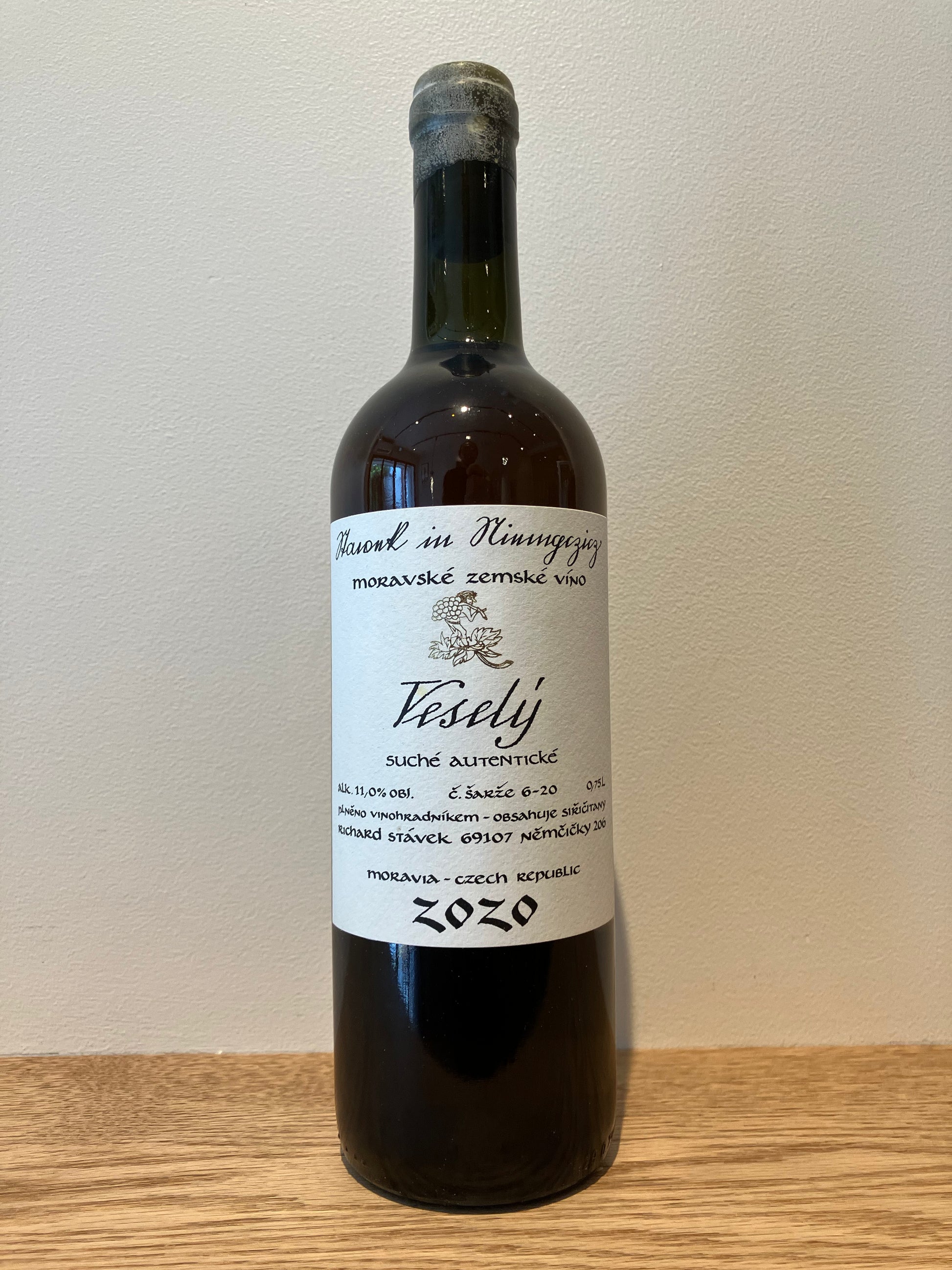 収量は約20hl/ha。Veselý(幸せの意)は畑の名 前です。砂質土壌。南東向きの斜面。手摘み で収穫したブドウを足でつぶします。除梗はし ません。自発的な醗酵を促し、房ごとマセレー ションをします。バトナージュをしながら10カ月 の熟成。樽はモラビア周辺で取れたニセアカシア (Robinia pseudoacacia)100ℓと200ℓそして 600ℓの樽を併用します。一切のろ過はせずに瓶詰となります。Richard Stavekを象徴する多品種のフィールドブレンドワイン。このワインを一口飲んで、リチャードのワインを日本に輸入したいと思いました。 複雑で芳醇。穏やかで抒情的。馥郁とした香りが印象深いオレンジワインです。 スピグルボッケイに並ぶ最高峰。緻密な香りと嫋やかな揺らぎ。並ぶワインを知りません。20年もまた同様です。19年に比べ幾分か、濃縮度が上がった気はします。